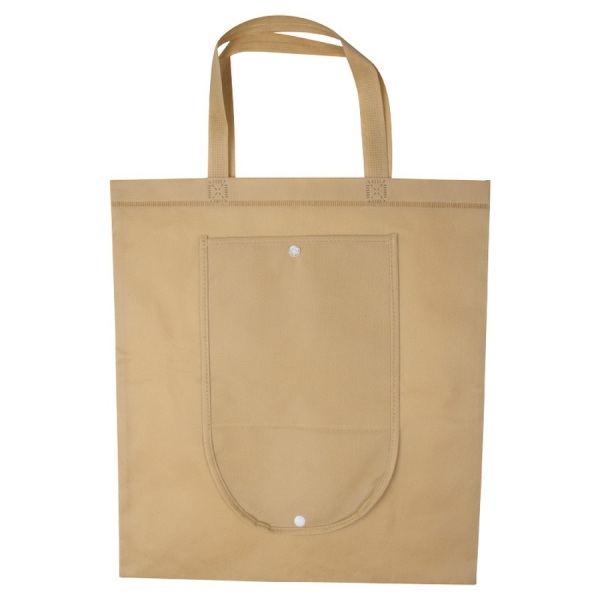 Skladacia taška z netkanej textílie s gramážou 80 g/m2, pevným krížovým prešívaním a ušami.