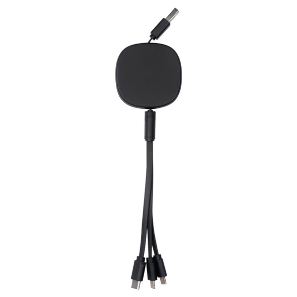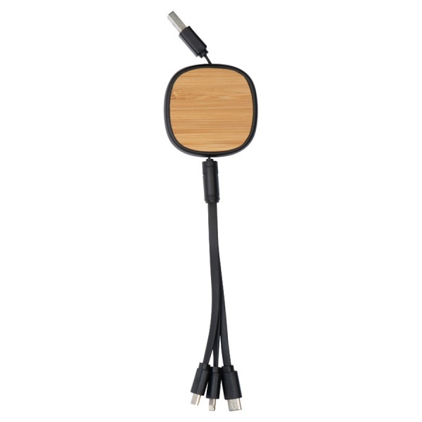 Nabíjací kábel s USB, C-Type, Mini USB a iOS pripojením. Vyrobený z plastu s bambusovým povrchom.