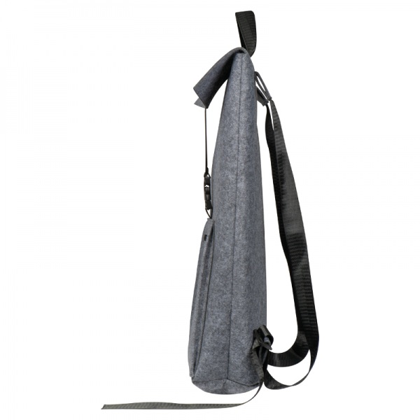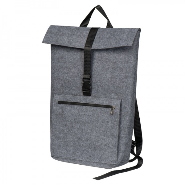 Kvalitný batoh z recyklovanej plsti. Okrem priestrannej nastaviteľnej vnútornej priehradky má predné priehradky na zips, priehradky na notebook a nastaviteľné ramenné popruhy.