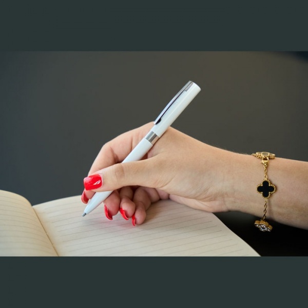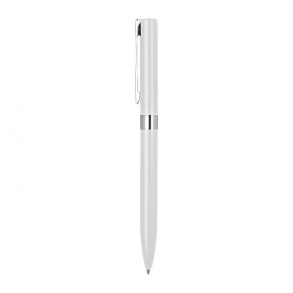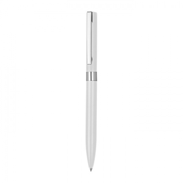 Elegantné kovové gélové pero s doplnkami v chrómových farbách. Hrúbka hrotu pera: 0,7 mm. Modrá náplň