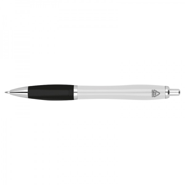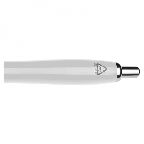 Guľôčkové pero R-ABS vyrobené z recyklovaného plastu, v rôznych farbách s doplnkami v chrómových farbách a čiernou protišmykovou časťou na uchopenie.