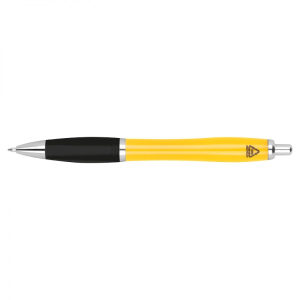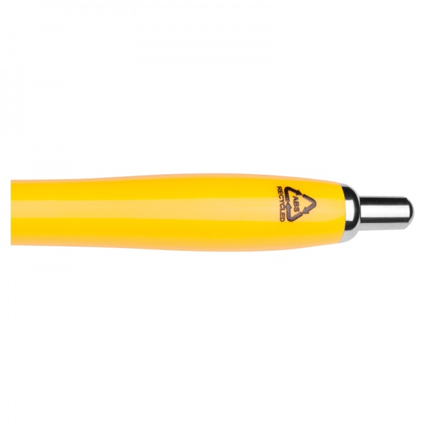 Guľôčkové pero R-ABS vyrobené z recyklovaného plastu, v rôznych farbách s doplnkami v chrómových farbách a čiernou protišmykovou časťou na uchopenie.