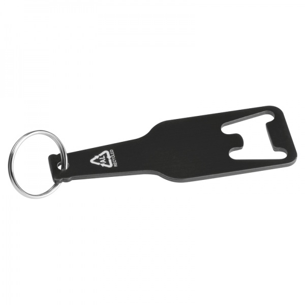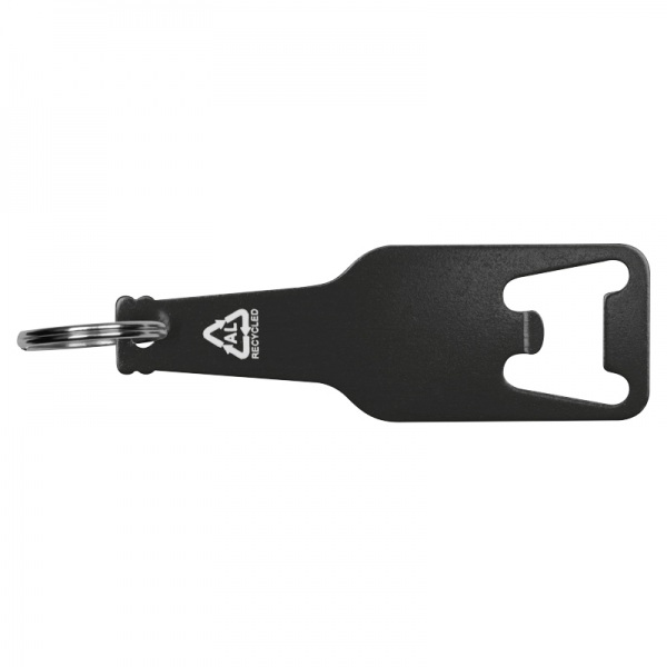 Otvárač na fľaše vyrobený z recyklovaného hliníka s krúžkom na kľúče.