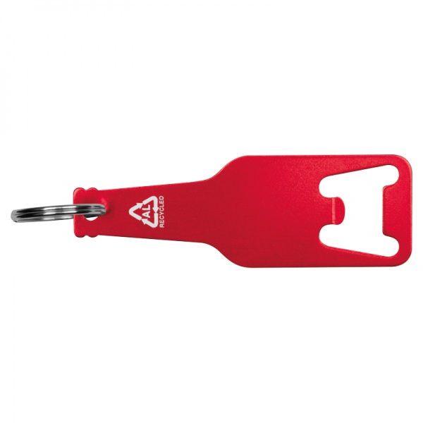 Otvárač na fľaše vyrobený z recyklovaného hliníka s krúžkom na kľúče.