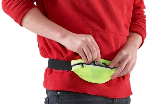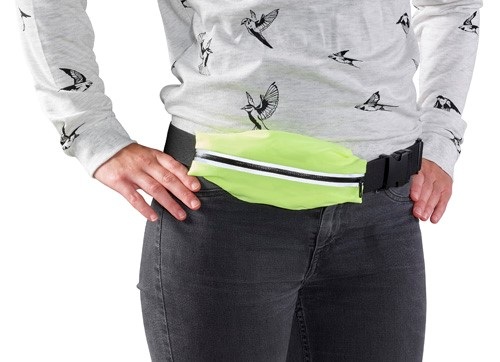 Polyesterová /220g/m2/ vodeodolná pásová taška s reflexnými pruhmi a nastaviteľným elastickým pásikom.