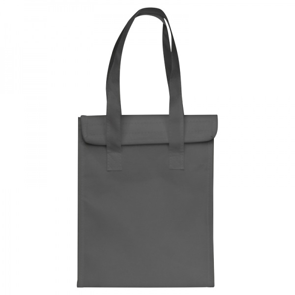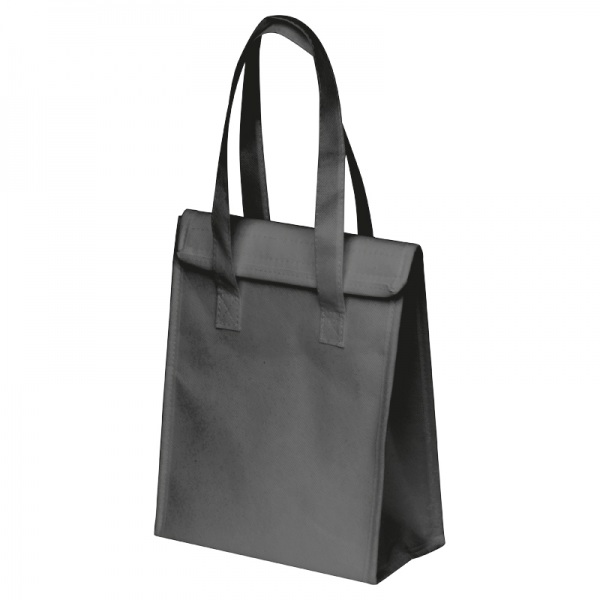 Netkaná chladiaca taška s podšívkou, s hliníkovou fóliou vo vnútri, suchým zipsom a dvoma rukoväťami.