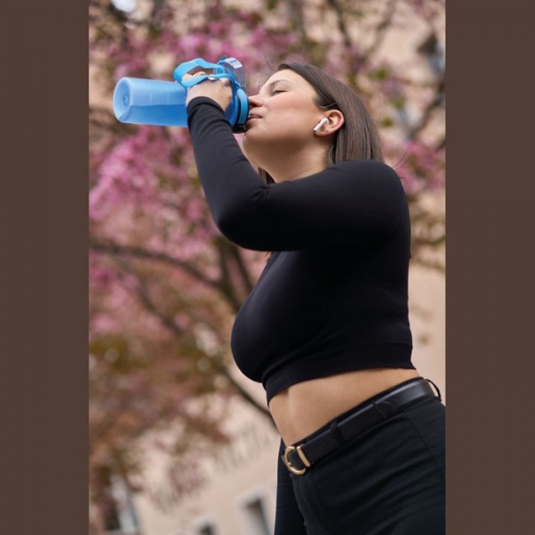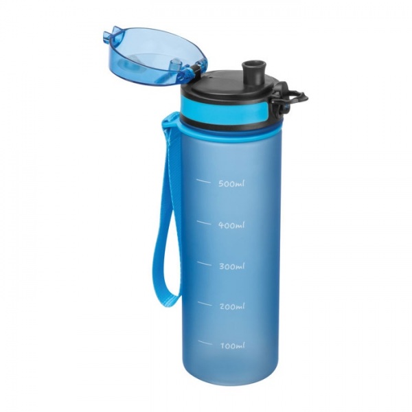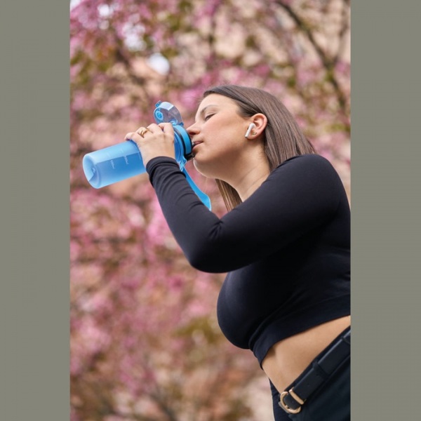 Nepriepustná fľaša na pitie z Tritanu s meracou stupnicou a popruhom na prenášanie. Vďaka robustnému materiálu je fľaša mimoriadne odolná a neobsahuje BPA.