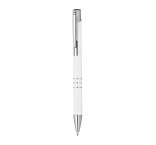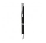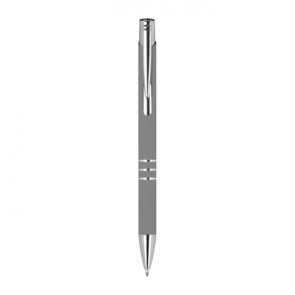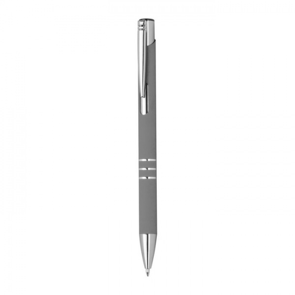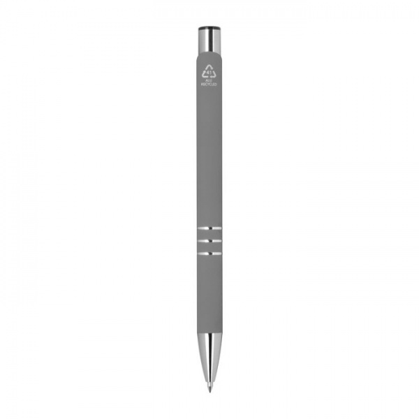 Gélové pero vyrobené z recyklovaného hliníka s pogumovaným povrchom a tromi ozdobnými krúžkami. S modro píšucou veľkokapacitnou náplňou (pologelový 0,7 mm hrot).