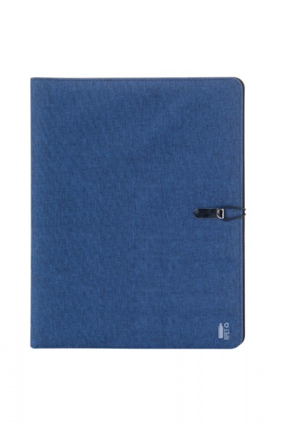 Polyesterová 300D RPET zložka na dokumenty, formát A4. Obsahuje poznámkový blok (25 linajkových listov) a organizér s viacerými vreckami.