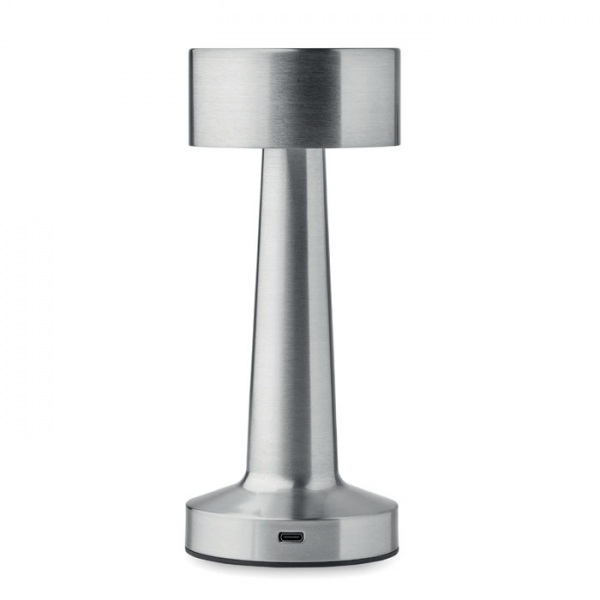 Železná stolová lampička s 12 LED svetlami, plynulým stmievaním, 3 režimami svietenia a dotykovým ovládaním. USB port a dobíjacia Li-Ion 1200 mAh batéria. Pracovný čas 6 hodín po úplnom nabití. Vrátane nabíjacieho kábla.