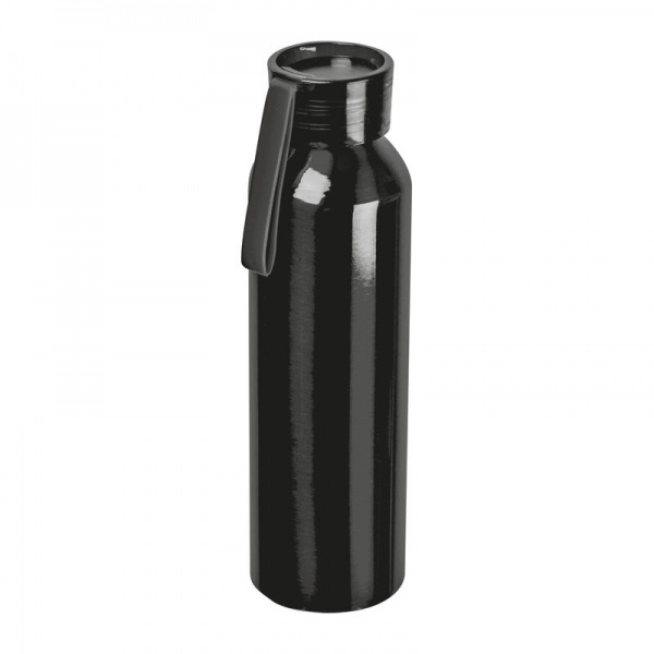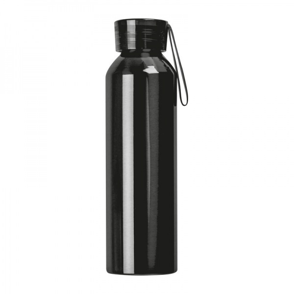 Recyklovaná hliníková fľaša s priehľadne zafarbeným viečkom, objem: 600 ml. Ekologická a praktická na cesty.