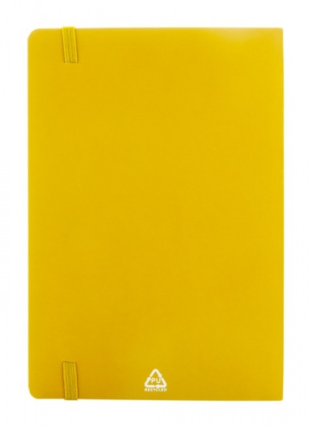 Blok A5 z recyklovanej PU kože s mäkkou väzbou s 80 linajkovými listami z recyklovaného papiera.