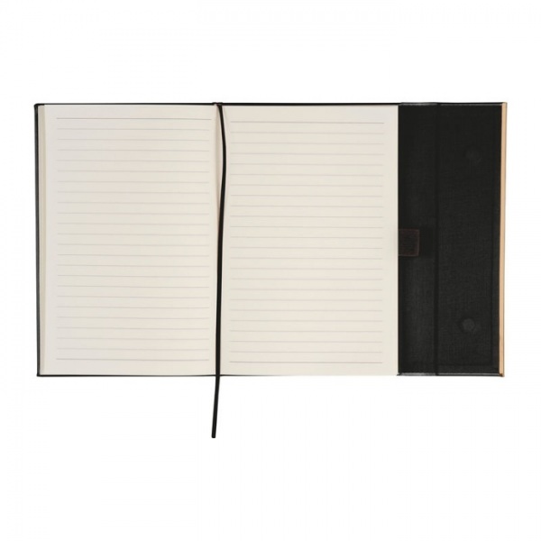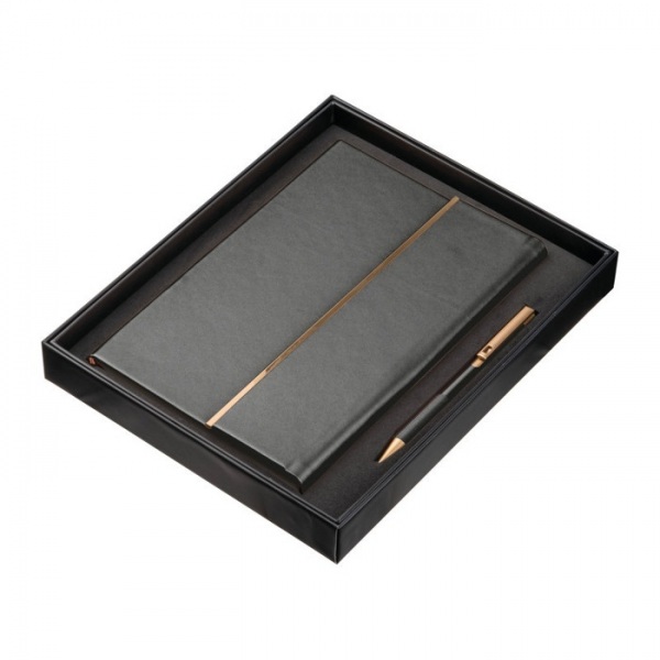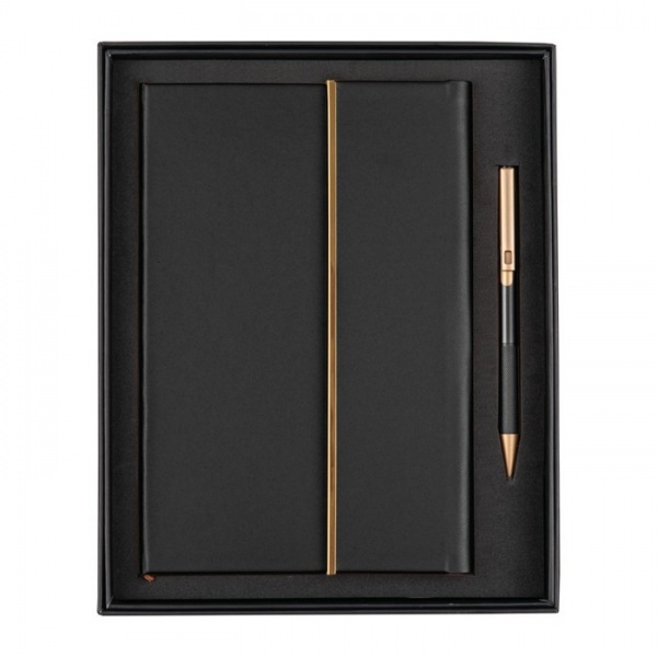 Sada pozostávajúca zo zápisníka A5 z recyklovanej kože so 192 riadkovanými stranami a farebne zodpovedajúceho guľôčkového pera s veľkou náplňou.