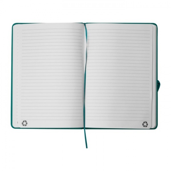 Zápisník formátu A5 s obalom z recyklovaného PU a 160 linajkovanými stranami (80 listov) z recyklovaného papiera.