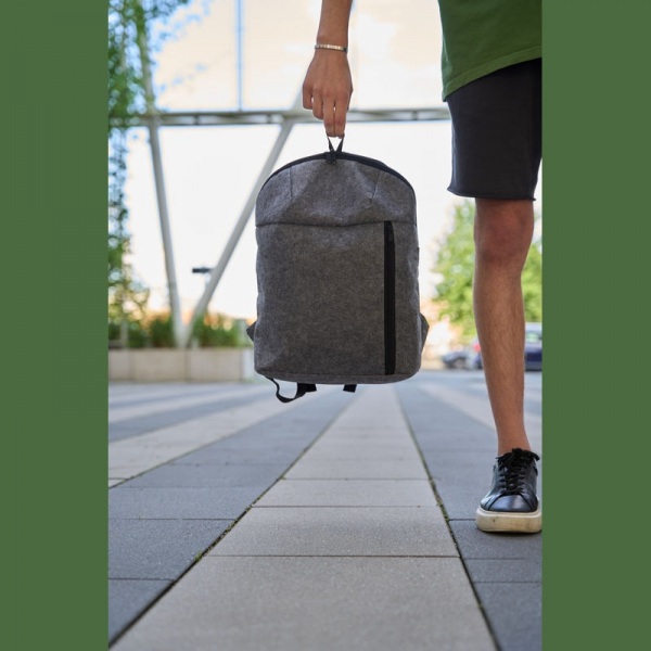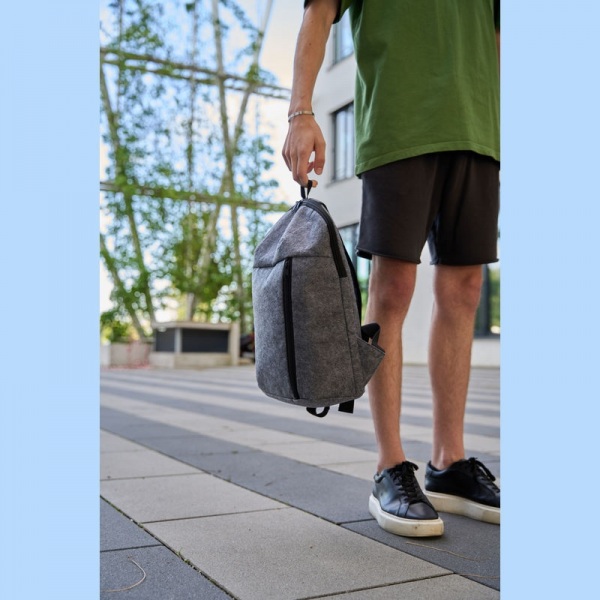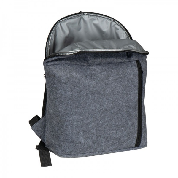 Ruksak vyrobený z RPET plsti s chladiacou funkciou a dodatočnou prednou priehradkou. Udržateľne vyrobený z recyklovaného materiálu.