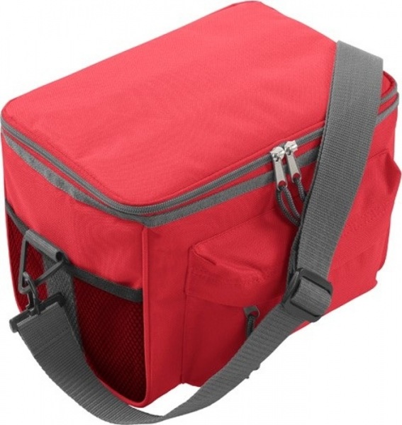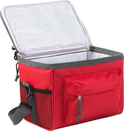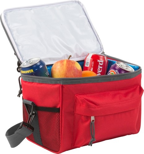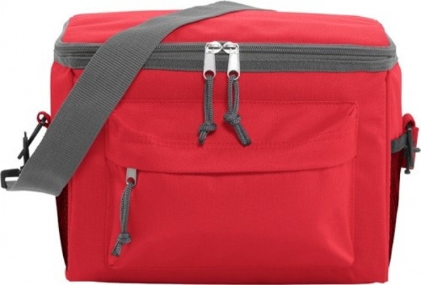 Chladiaca termotaška z PES 600D s vreckom vpredu na zips, 2 bočnými vreckami zo sieťoviny, 1 veľkou priehradkou a nastaviteľným ramenným popruhom.