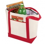 Netkaná termotaška s hlavným priestorom na zips a dvoma ušami.