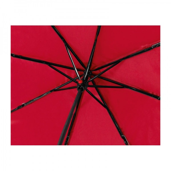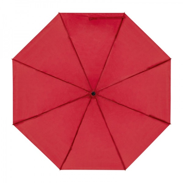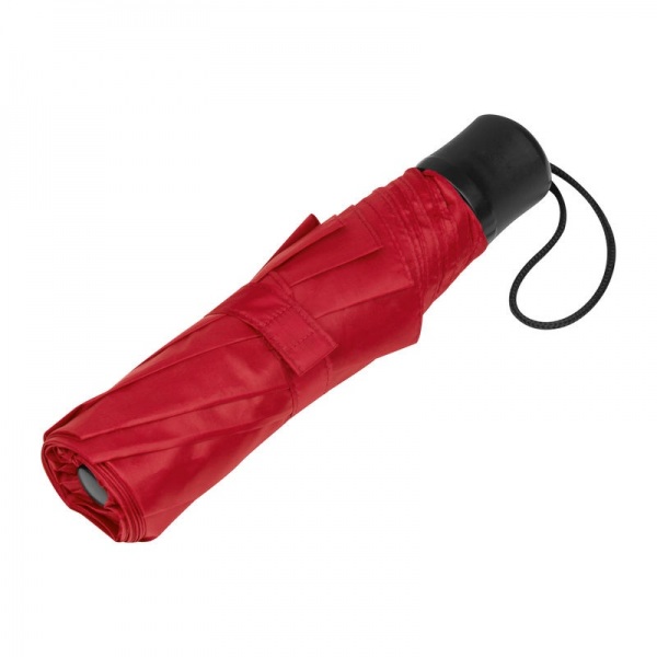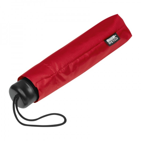 Manuálne otvárateľný teleskopický vreckový dáždnik z recyklovaného PET s ochranným obalom.