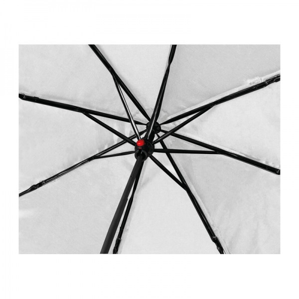 Manuálne otvárateľný teleskopický vreckový dáždnik z recyklovaného PET s ochranným obalom.