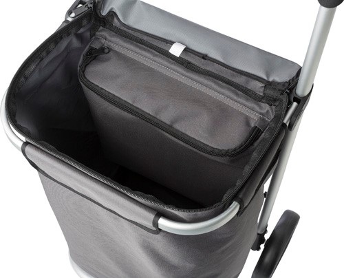 Nákupný vozík v kombinácii s mobilnou chladničkou z PES (320-330g) s rámom a opierkou z hliníka a penovou rukoväťou (EVA/PEVA).
