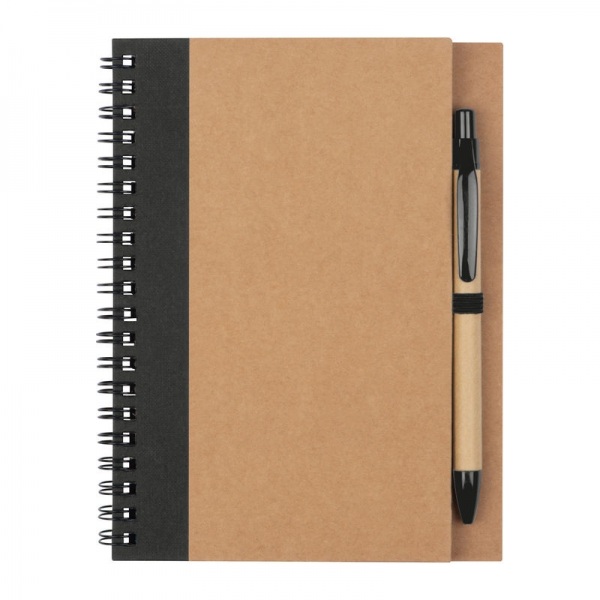Zápisník so 60 stranami z recyklovaného papiera, vrátane modro píšuceho papierového guľôčkového pera z ABS a papiera.