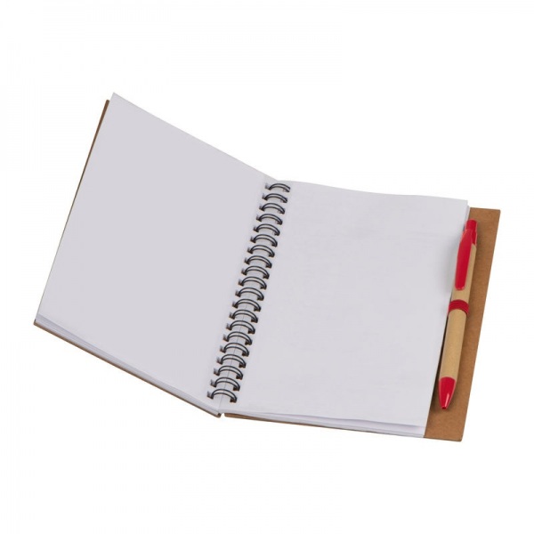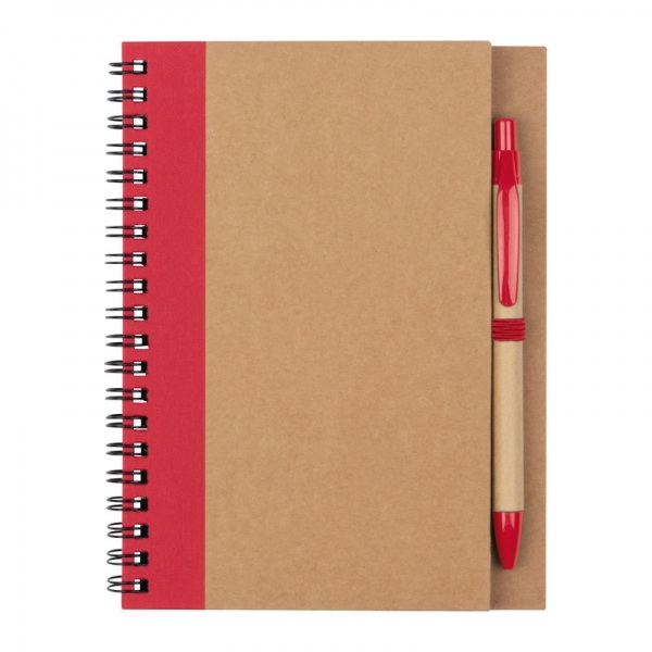 Zápisník so 60 stranami z recyklovaného papiera, vrátane modro píšuceho papierového guľôčkového pera z ABS a papiera.