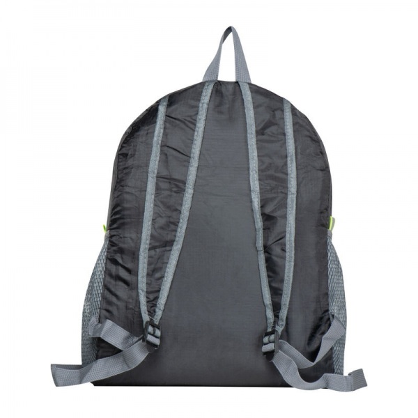 Skladací batoh z recyklovaného PET s hlavnou priehradkou a dvoma sieťovanými bočnými vreckami. Nastaviteľný ramenný popruh pre optimálne pohodlie pri nosení. Praktický a ekologický.