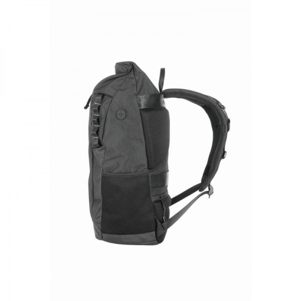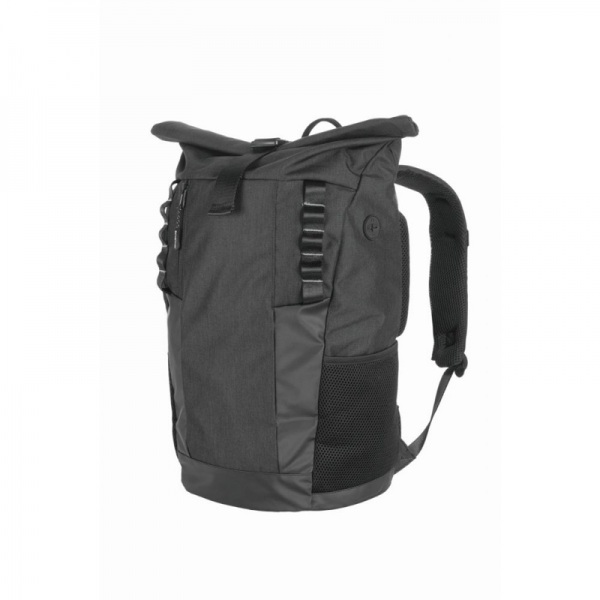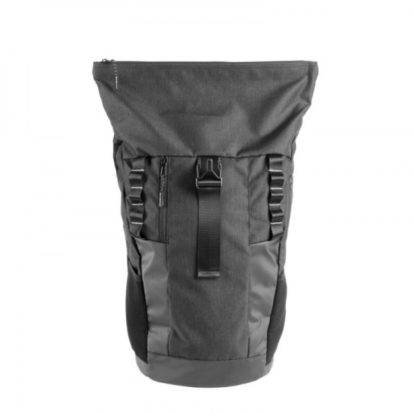 Hlavná vnútorná priehradka s vreckom, predné malé vrecko na zips, 2 bočné sieťované vrecká, otvor na slúchadlá a malé zadné vrecko. Po zrolovaní sa zapína plastovou prackou. Polstrovaný chrbát, ramenné popruhy a dno je z umývateľného materiálu.