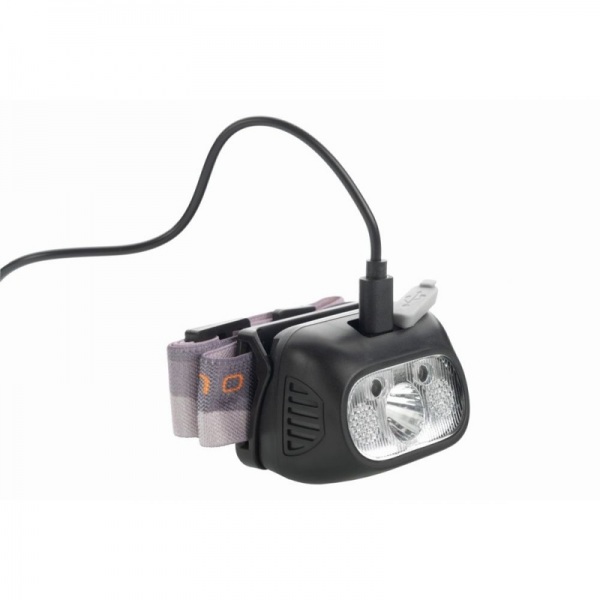 Dobíjacia čelovka s 5 LED diódami (hlavná dióda, 2 vedľajšie diódy, 2 červené bočné diódy). Čelovka má 3 režimy svietenia: silné, slabé, červené. Keď je batéria úplne nabitá, svieti až 6–12 hodín. Dodáva sa s USB-C káblom. Balené v darčekovej krabičke.
