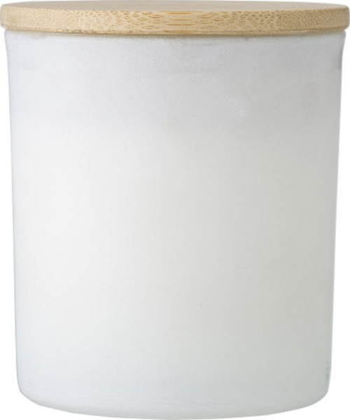 Sklenená sviečka s voskom na rastlinnej báze a bambusovým viečkom. Sviečka má dobu horenia okolo 33 hodín. 4 vône v závislosti od farby: škorica (červená), vanilka (biela), santalové drevo (čierna) a jazmín (zelená). Jednotlivo balené v bielej tube.
