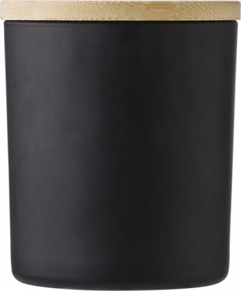Sklenená sviečka s voskom na rastlinnej báze a bambusovým viečkom. Sviečka má dobu horenia okolo 46 hodín. 4 vône v závislosti od farby: škorica (červená), vanilka (biela), santalové drevo (čierna) a jazmín (zelená). Jednotlivo balené v bielej tube.