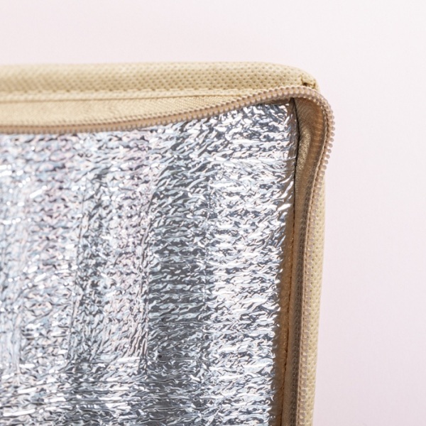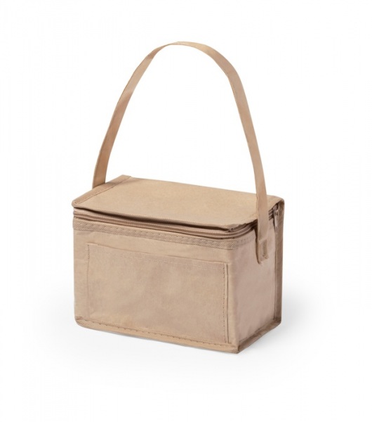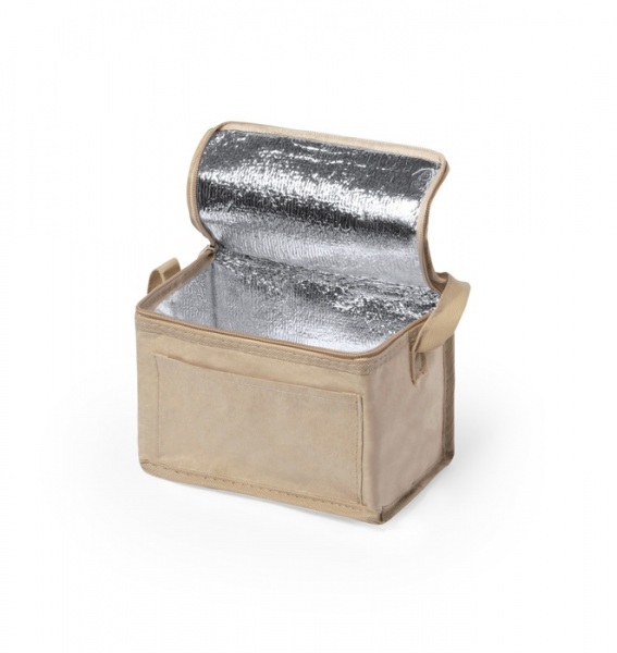 Chladiaca taška na zips z recyklovaného papiera s lamináciou, vnútro s hliníkovým polstrovaním, pre 6 ks plechoviek s objemom 0,33 l. S predným vreckom ideálne na potlač.
