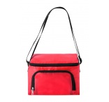 Polyesterová chladiaca taška s priehradkami na zips, hliníkovým polstrovaním a ramenným popruhom. Pre 6 ks plechoviek 0,33L. 210D polyester.