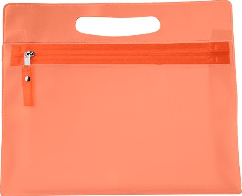 Toaletná taška z matného PVC s integrovanou rukoväťou a zipsom.