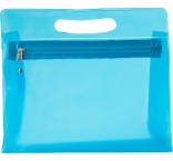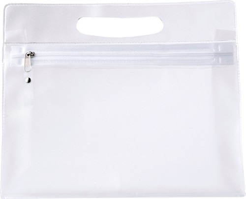 Toaletná taška z matného PVC s integrovanou rukoväťou a zipsom.