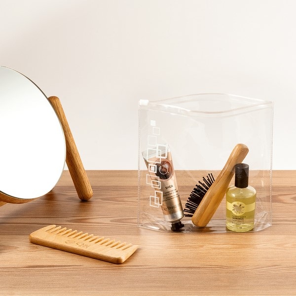 Vzduchotesná kozmetická taštička z PVC. Vhodná na cestovanie lietadlom. Fľaštičky nie sú súčasťou balenia.