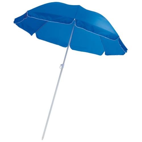 Veľký praktický plážový slnečník z polyesteru s nastaviteľnou kovovou rúčkou. Slnečník je dodávaný v transparentnom obale.