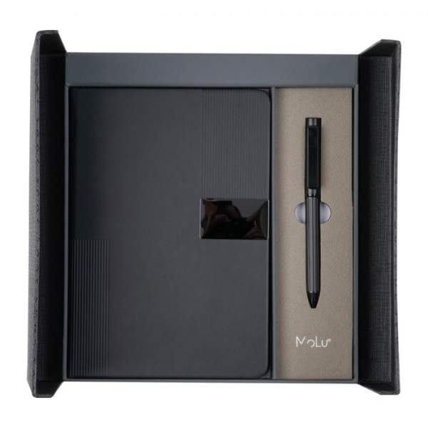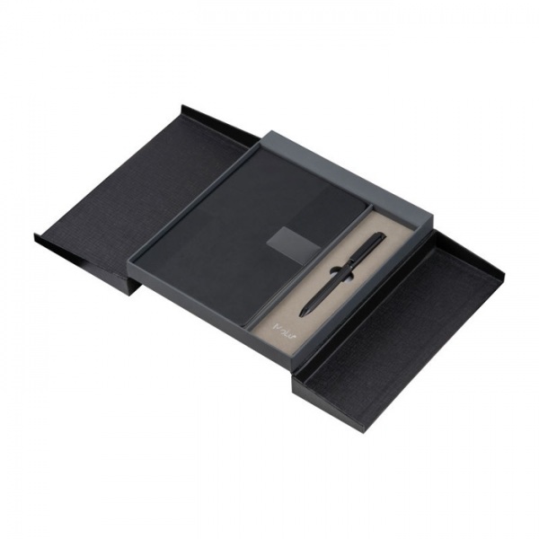 Sada pozostávajúca z guľôčkového pera a zápisníka s 100 listami z recyklovaného papiera. Štýlová, udržateľná a ideálna do kancelárie alebo na cesty. V exkluzívnom darčekovom balení a s 2-ročnou zárukou.