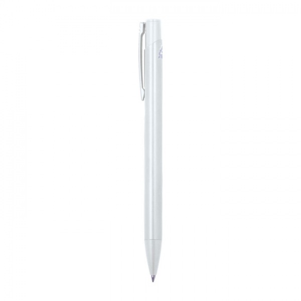 Plnofarebné guľôčkové pero z recyklovaného hliníka s modrou náplňou s veľkou kapacitou.