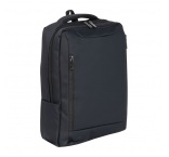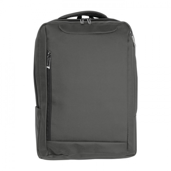 Batoh na notebook z PU pre 15-16 palcové notebooky. 2 predné vrecká na zips, veľká hlavná priehradka s polstrovaním pre laptop, vnútornými priehradkami, polstrovanými ramennými popruhmi, rukoväťou a popruhom na zadnej strane na pripevnenie ku kufru.