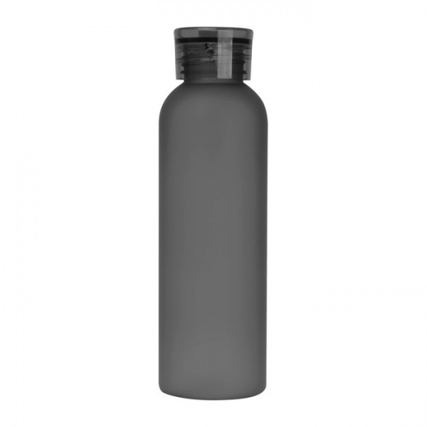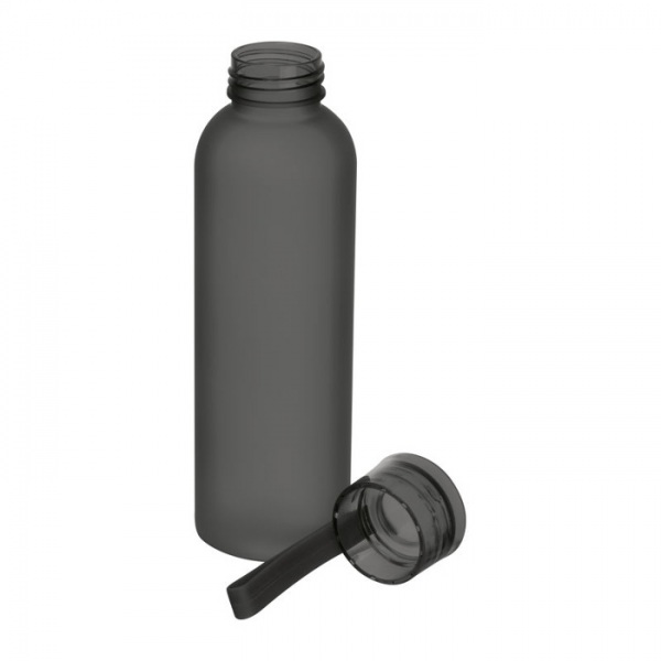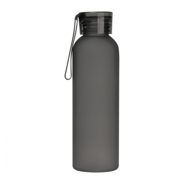 Fľaša na pitie z PET materiálu s gumovým držadlom na viečku a objemom 600 ml. Matná povrchová úprava fľaše.