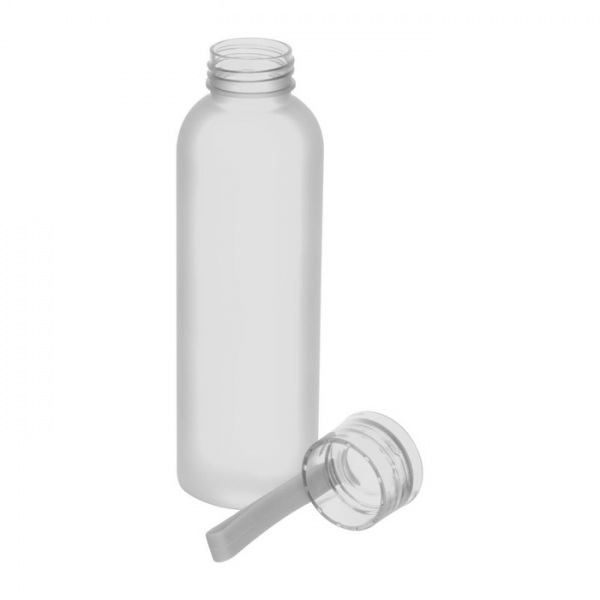 Fľaša na pitie z PET materiálu s gumovým držadlom na viečku a objemom 600 ml. Matná povrchová úprava fľaše.