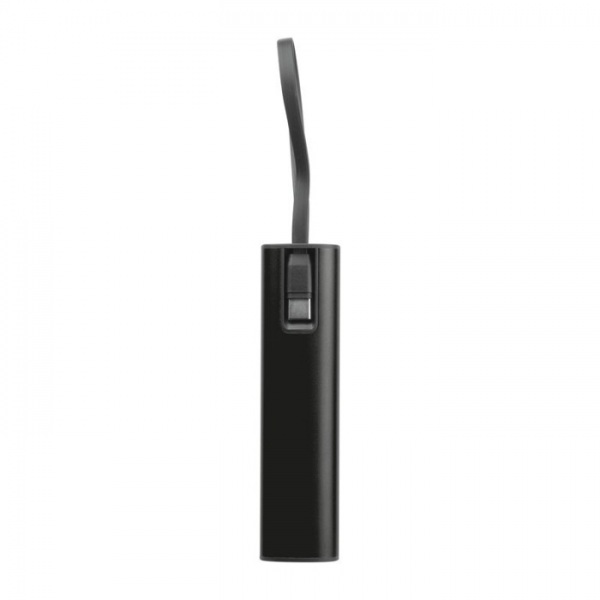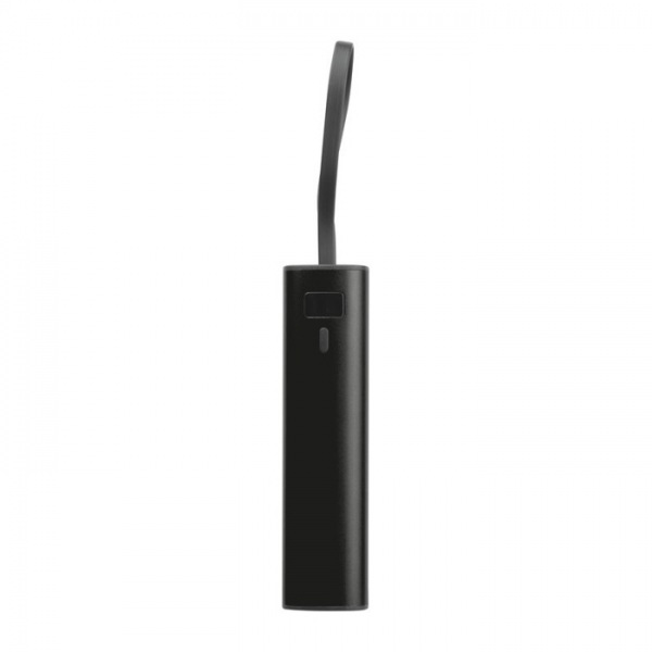 Hliníková powerbanka s lítium-iónovou batériou s kapacitou 5 000 mAh, indikátorom úrovne nabitia a integrovaným nabíjacím káblom USB-C. Súčasťou balenia je aj 30 cm nabíjací kábel typu A na C.