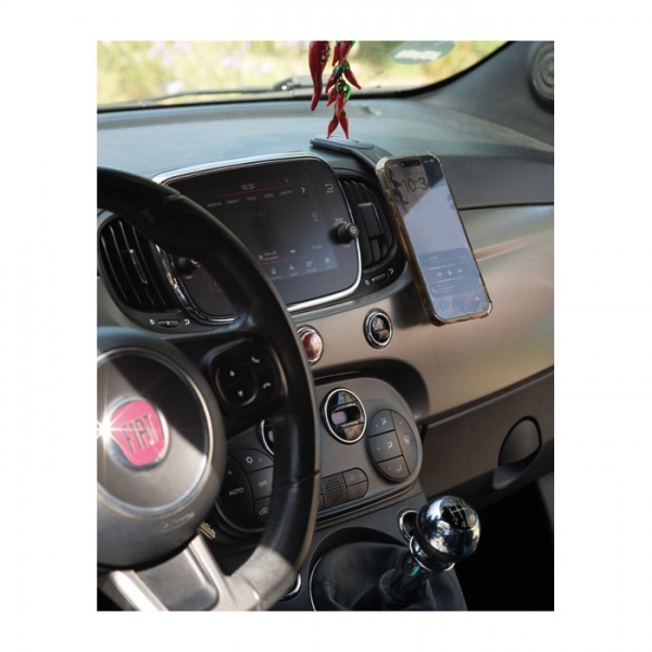 Magnetický držiak na mobil do auta, ktorý je možné pripevniť pomocou lepiacej nálepky. Vďaka pevnej suchému zipsu sa dá kedykoľvek odstrániť. Krúžok obsahuje magnet, ktorý spoľahlivo priľne ku kompatibilným smartfónom; pre nemagnetické zariadenia je súčasťou balenia lepiaci magnetický krúžok.
