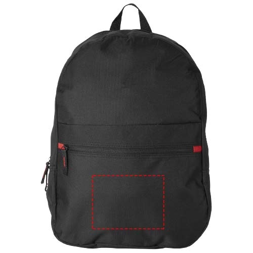 Ruksak s hlavným priečinkom na zips, predným vreckom na zips, druhým predným vreckom na suchý zips, nastaviteľnými polstrovanými chrbtovými popruhmi a spevneným uchom. Materiál: polyester 600D.