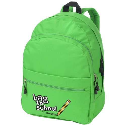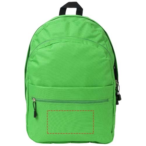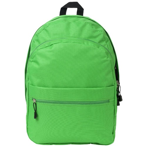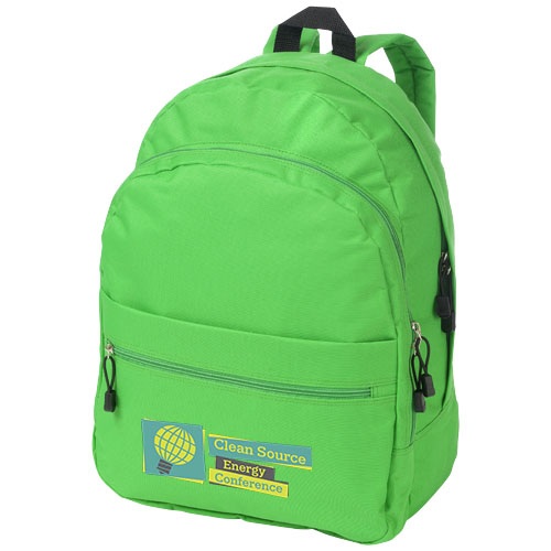 Ruksak s nastaviteľnými chrbtovými popruhmi, dvomi priečinkami na zips a predným vreckom na zips. Materiál: polyester 600D.