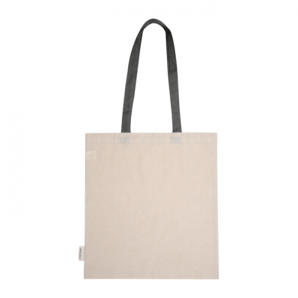 Bavlnená nákupná taška z certifikovanej bavlny Oeko-Tex® s dvoma dlhými rúčkami, vyrobená zo 75 % recyklovanej bavlny a 25 % recyklovaného PET. Gramáž látky: 140 g/m2.