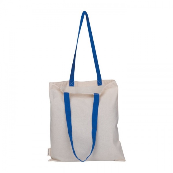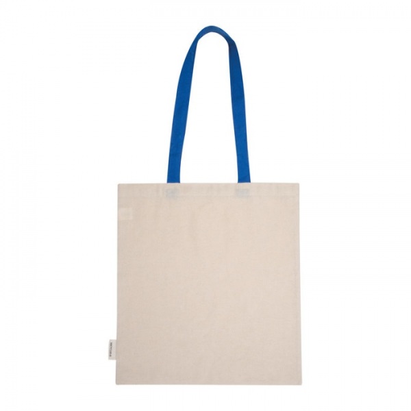 Bavlnená nákupná taška z certifikovanej bavlny Oeko-Tex® s dvoma dlhými rúčkami, vyrobená zo 75 % recyklovanej bavlny a 25 % recyklovaného PET. Gramáž látky: 140 g/m2.
