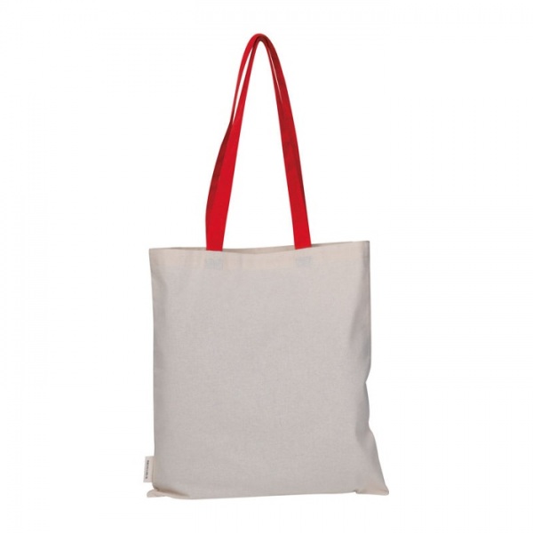 Bavlnená nákupná taška z certifikovanej bavlny Oeko-Tex® s dvoma dlhými rúčkami, vyrobená zo 75 % recyklovanej bavlny a 25 % recyklovaného PET. Gramáž látky: 140 g/m2.
