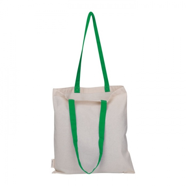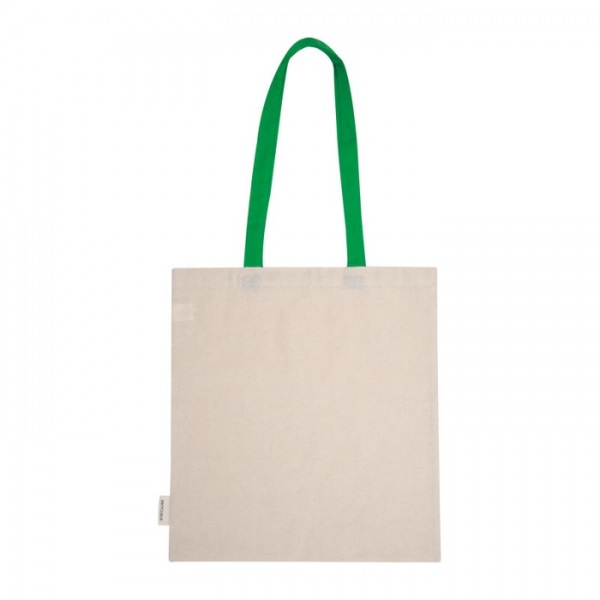 Bavlnená nákupná taška z certifikovanej bavlny Oeko-Tex® s dvoma dlhými rúčkami, vyrobená zo 75 % recyklovanej bavlny a 25 % recyklovaného PET. Gramáž látky: 140 g/m2.